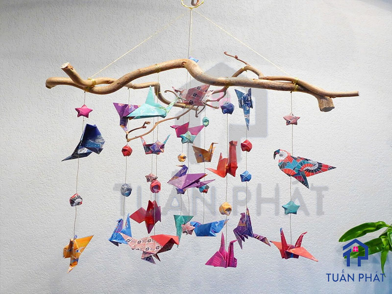 Ngoài ra, bạn cũng có thể tạo thành các dây để thay thế các rèm cửa hoặc cũng có thể tạo chuông gió bằng những con hạc giấy. Hãy cùng điểm qua một số cách trang trí với hạc giấy nhé.