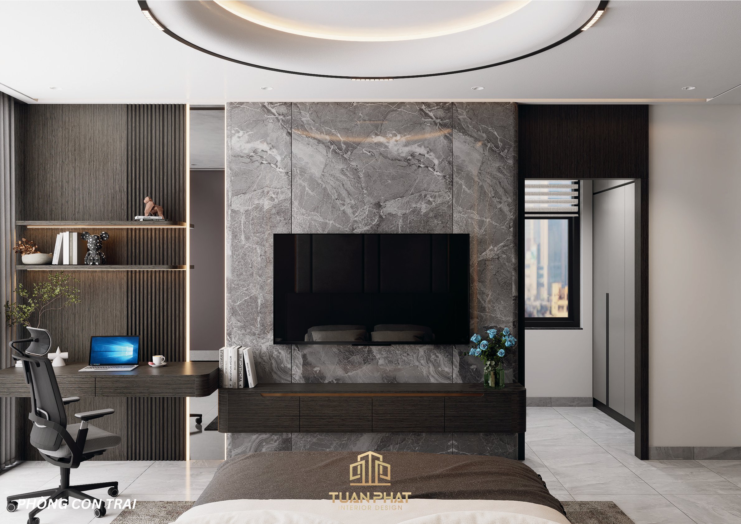 Nhà phố, Thiết kế nội thất gỗ công nghiệp, Thiết kế nội thất phòng ngủ hiện đại